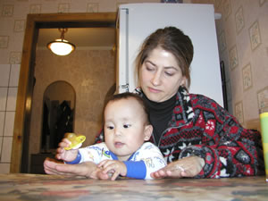 Then the day of fun really started. Sierra had the biggest melt down we've ever seen. She was screaming at the top of her lungs and we couldn't figure out what was wrong. Olga and Masha were suggesting different things to try but nothing was good enough -- (keep in mind, at least 30 Kazaks were now glaring at us as if we were somehow hurting her)